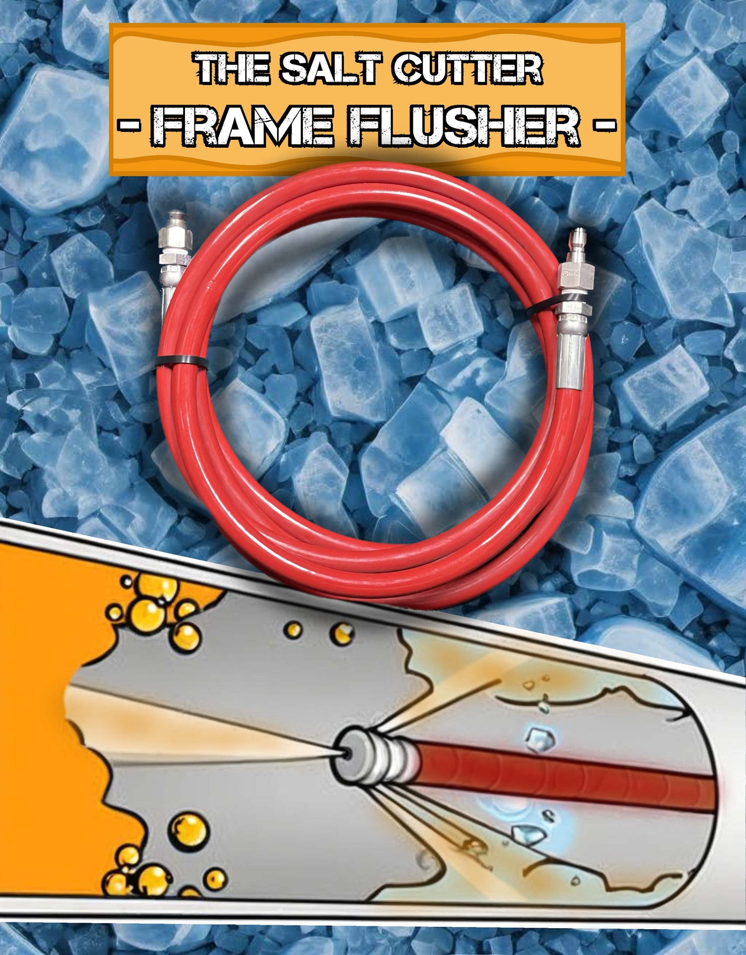 The Frame Flusher snakes through your vehicle’s frame, blasting away hidden Salt, Sand, and Grime!